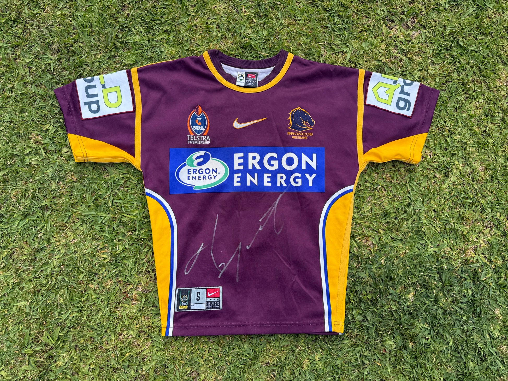 Now this jersey has a bit of an interesting story. For the 2005 season the Broncos changed their sleeve sponsor from Mortgage House to QLD Group, but it seems like these jerseys may have been printed before that change was made. The solution, just stitch a big phat patch over the top. If you turn it inside out you can see the original sponsor underneath.