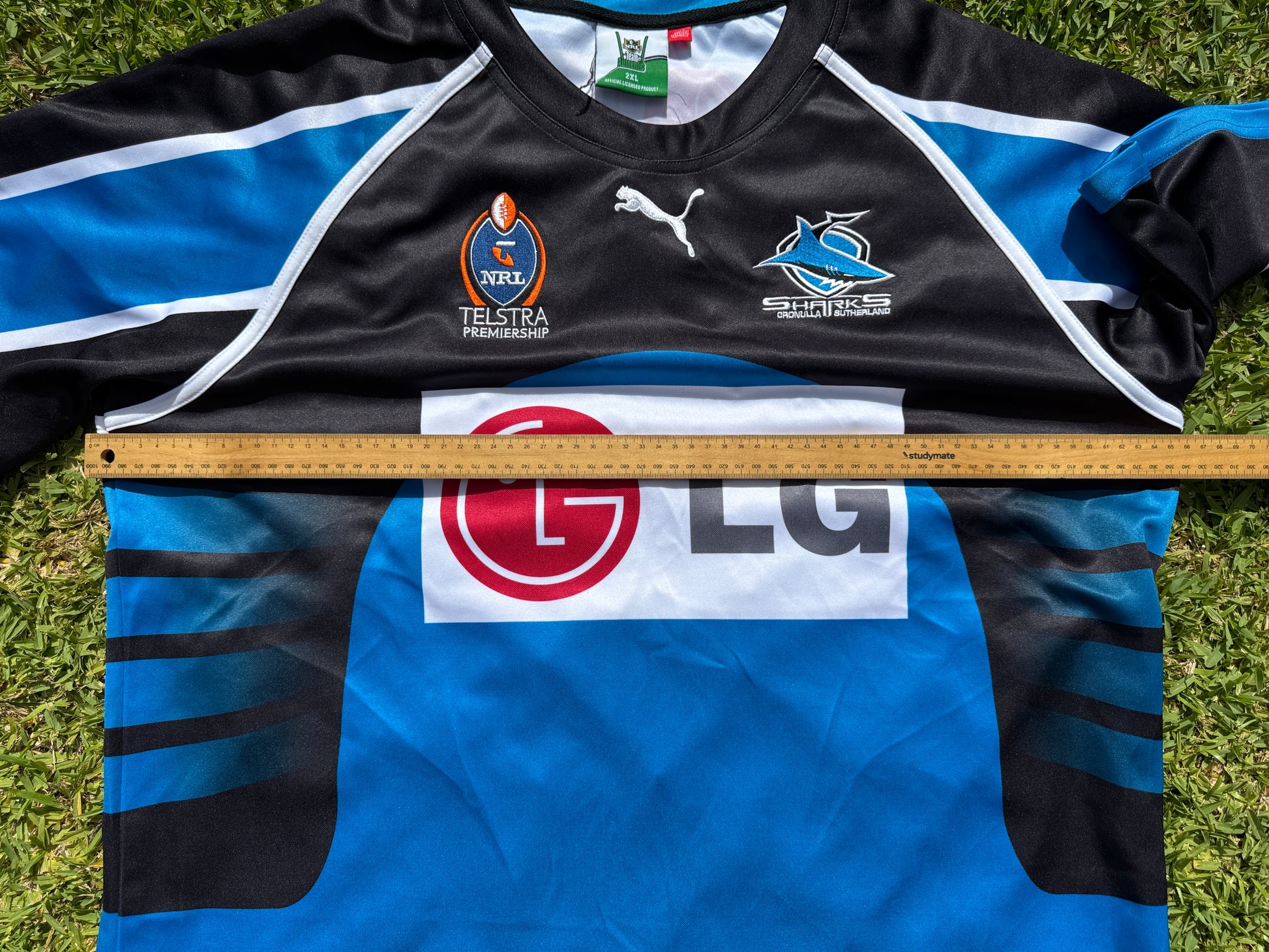 Made by Puma this jersey is marked as a 2XL but measures 66cm across the chest (pit to pit), making it more like a modern 3XL