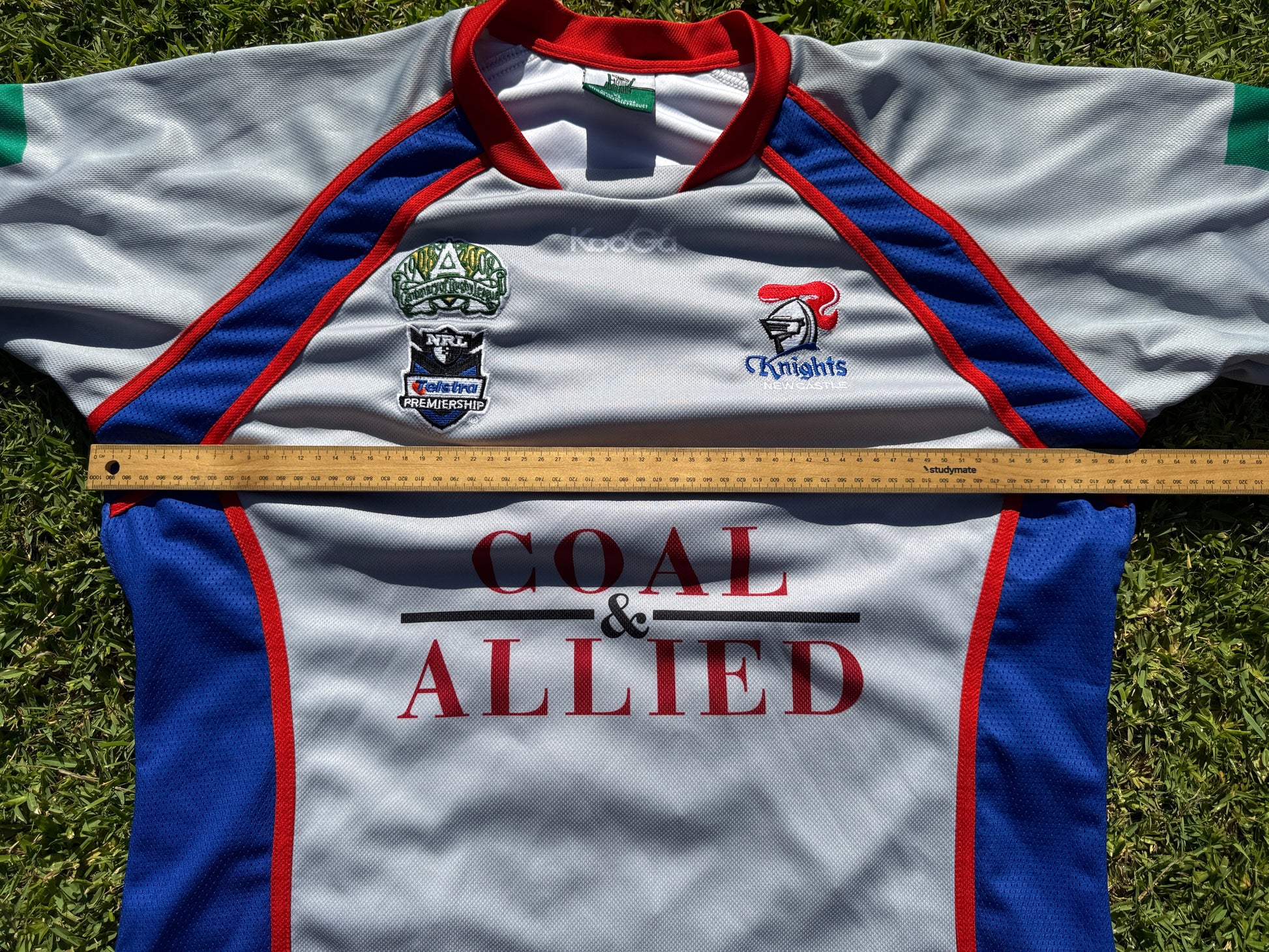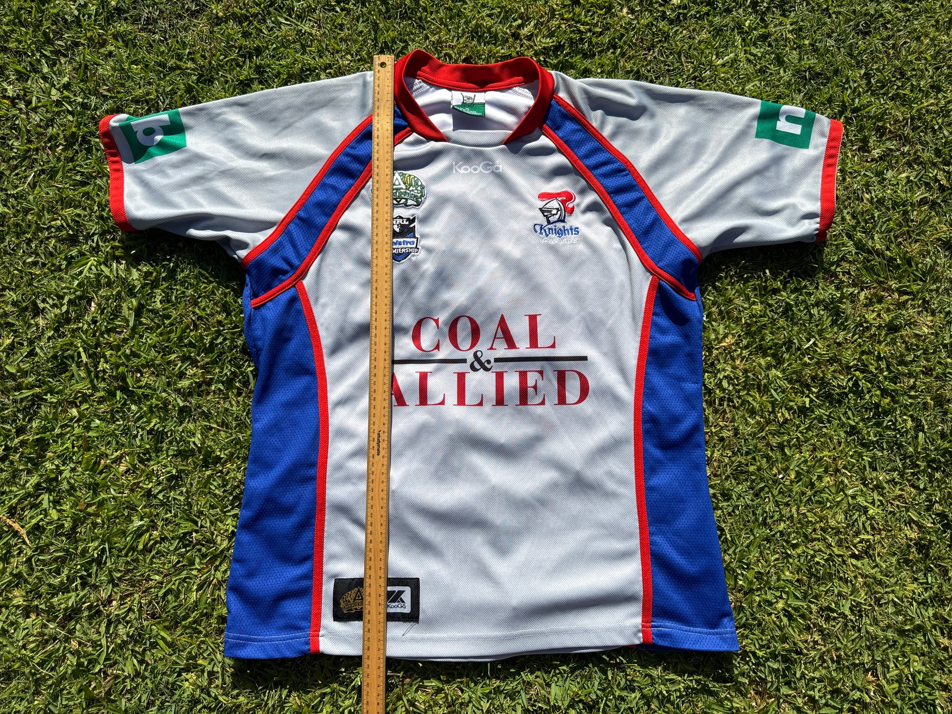 Celebrate your Newcastle Knights heritage with this authentic 2008 Away Jersey in size 2XL. This genuine piece from the Knights' distinguished history represents years of dedication, passion, and memorable moments on the NRL field. Whether you're a lifelong supporter reconnecting with cherished memories or a collector honouring rugby league's rich tradition, this jersey stands as a testament to the Knights' enduring spirit. The comfortable 2XL sizing makes it ideal for everyday wear, allowing you to proudly display your allegiance to one of the NRL's most respected clubs. Own a piece of Newcastle's storied past and wear it as a symbol of unwavering team loyalty.