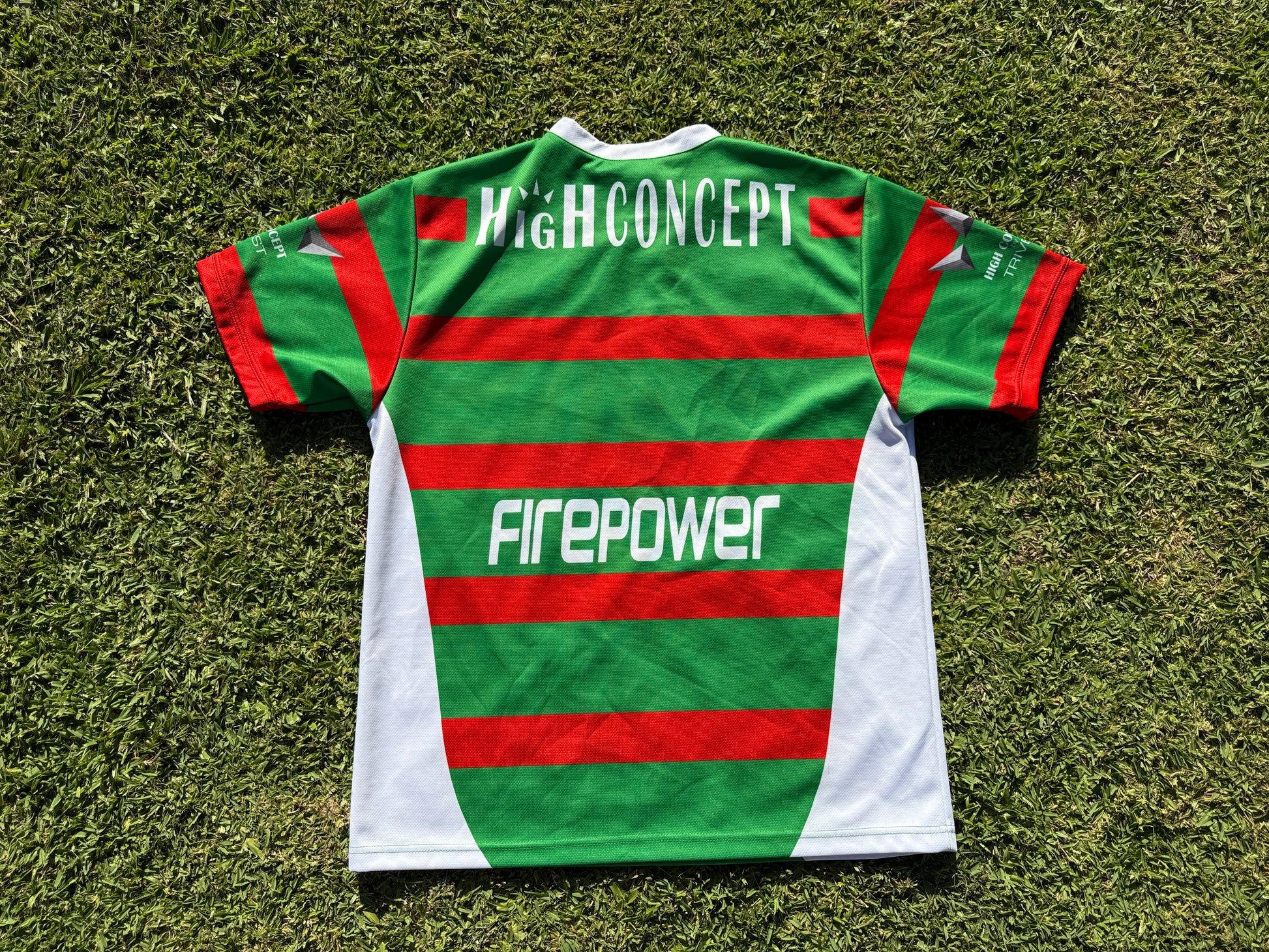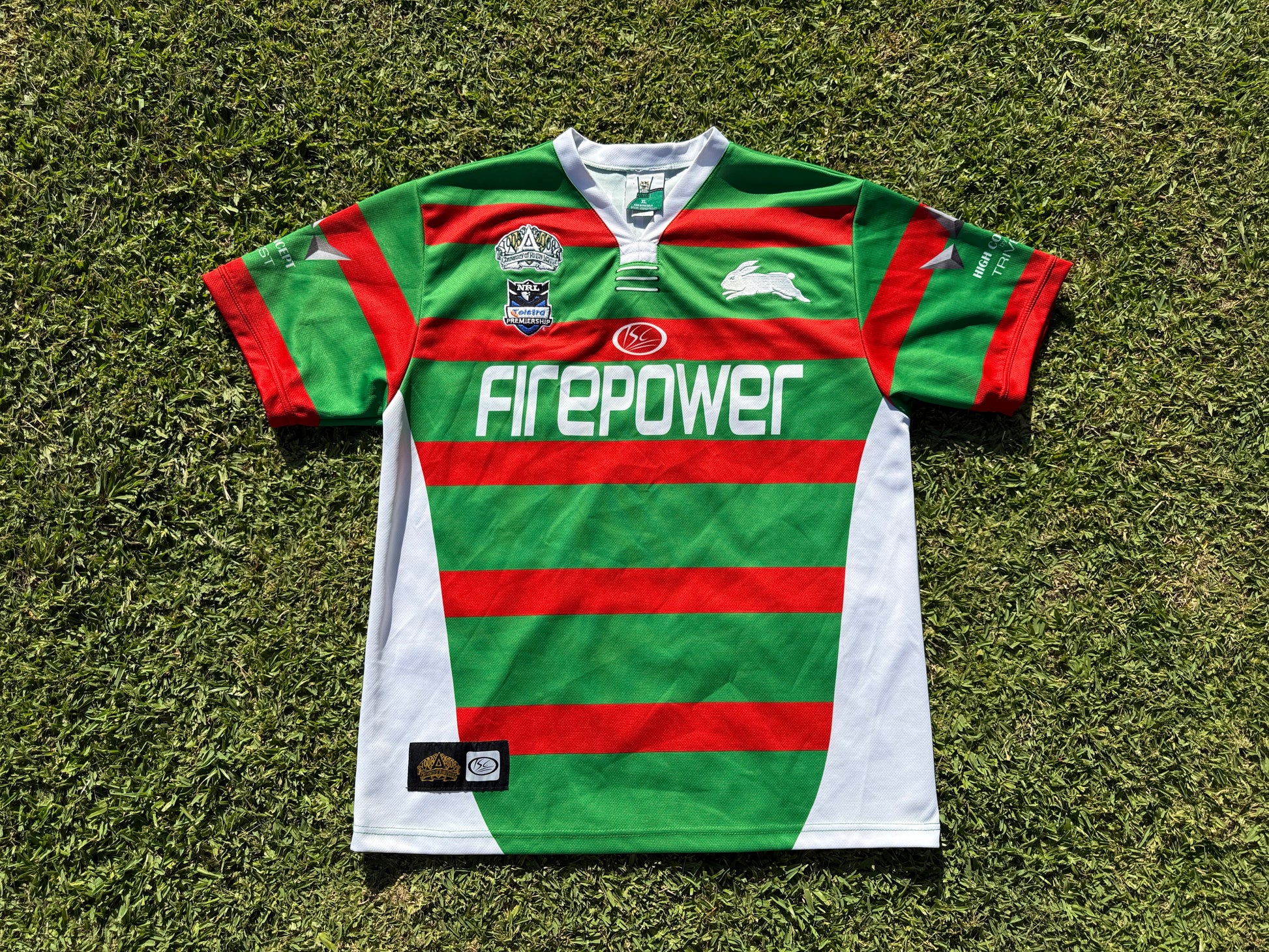 Now While this jersey is largely unremarkable the story of its main sponsor of the time, FirePower, is interesting. Perth-based Firepower claimed to have made a fuel additive to reduce fuel consumption and emissions but the company was flagged as suspicious by ASIC after it shot into public view signing multimillion-dollar sponsorship contracts with the Sydney Kings, the Western Force rugby team, South Sydney rugby league club, V8 supercars, the Australian Superbike Championship and the Tongan national rugby team.