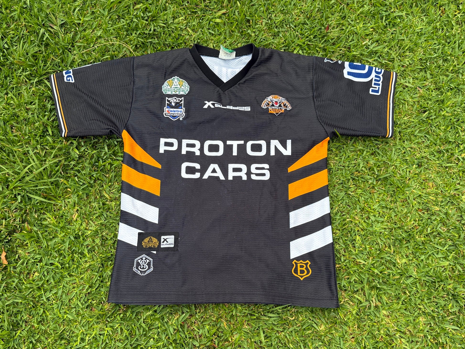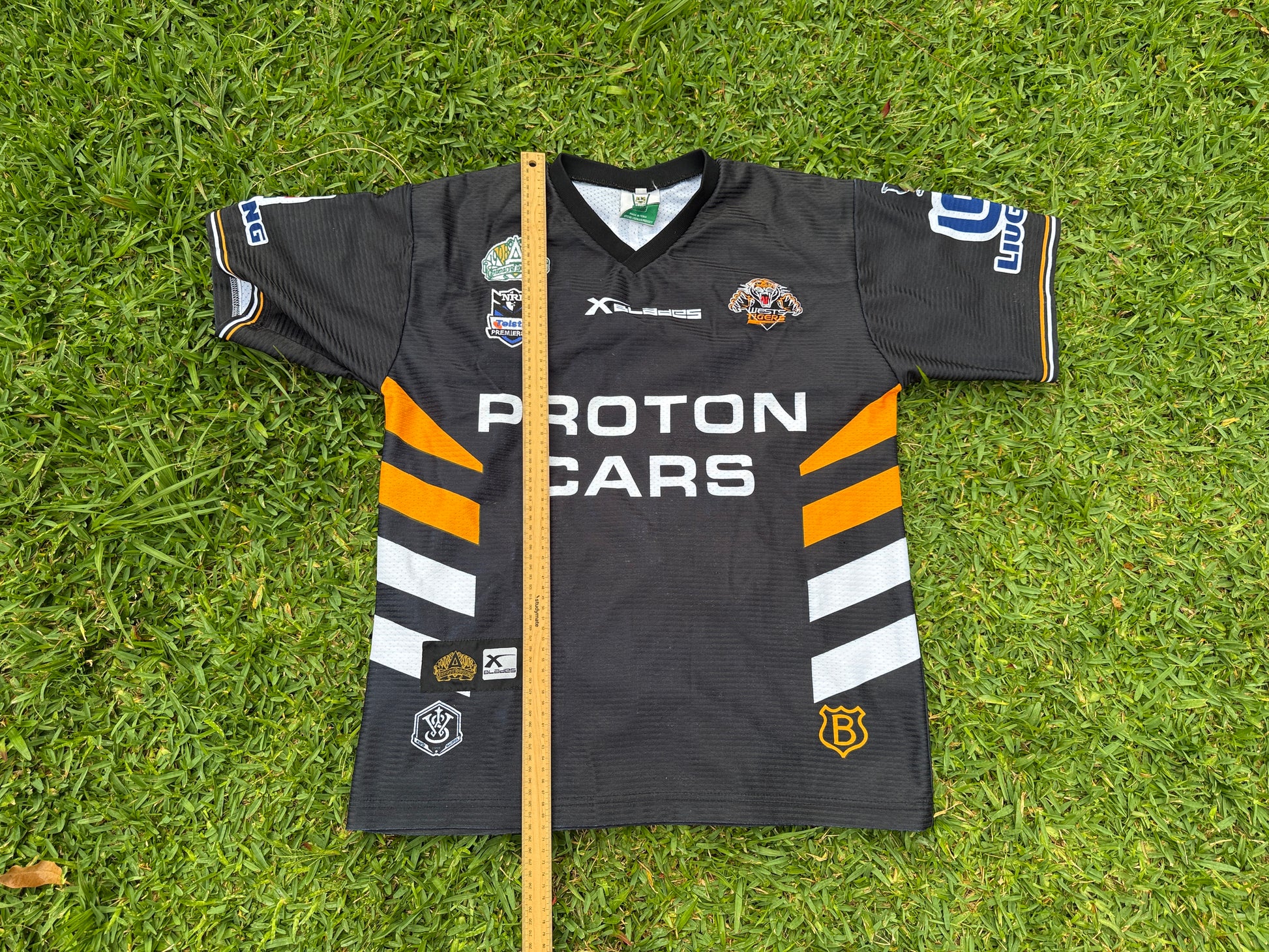 Celebrate a century of rugby league history with this 2008 Wests Tigers Away Jersey. This authentic jersey honours the rich legacy of the sport, featuring classic design elements that reflect the team's heritage. Crafted for comfort and durability, it is ideal for collectors and fans who appreciate the significance of this milestone. Wearing this jersey connects you to the proud tradition of the Wests Tigers and the broader rugby league community, making it a standout piece for any enthusiast’s collection.