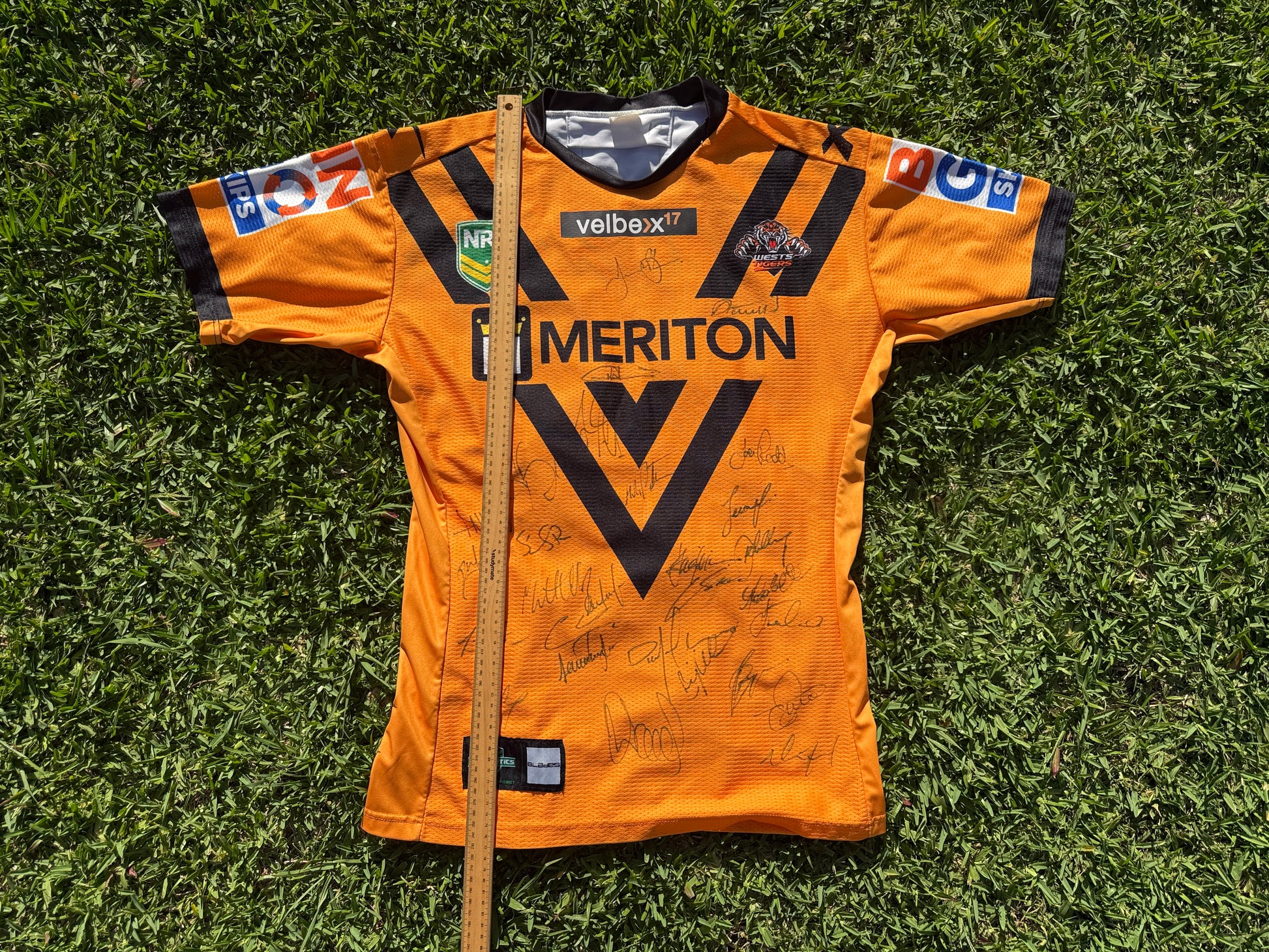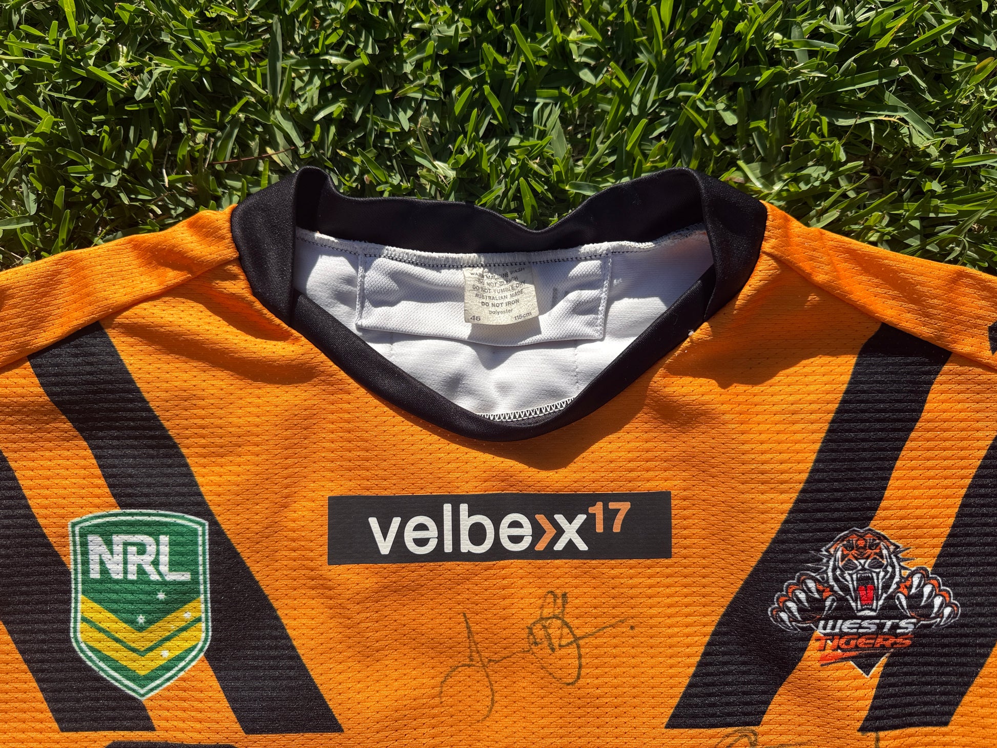 Now this one's pretty Cool. Wind the clock back to a cool night rnd 16 night in Leichardt against the Melbourne storm, and you will find the tigers running out in their Balmain themed Heritage Jersey. However this one was a little bit different, the previous times this kit was worn the Velbexx17 sponsor was on a white background, but this night it was on a black one. What this means is that we can pinpoint this kit not only to the particular game but also the player it was assigned to - Ava Seumanufagai. (watch the match here - www.youtube.com/watch?v=JaoOln2Euj4)