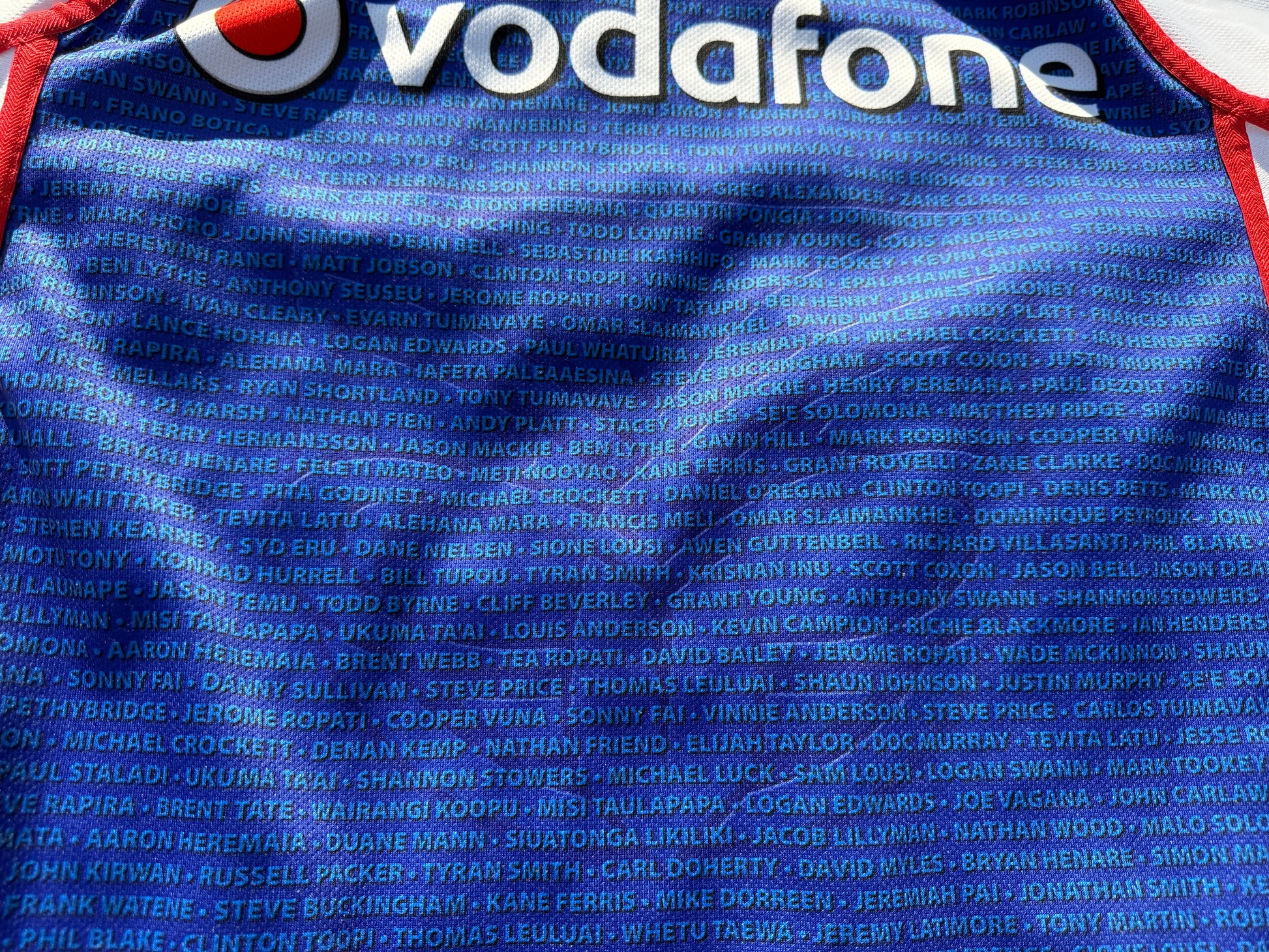Made in honour of their original 1995 Design the the 2014 Heritage strip was a tribute to the club's origins, featuring the names of the first 181 players to represent the team in the NRL. The jersey was worn in two matches that year, against the Knights in round 12 and the Broncos in round 15