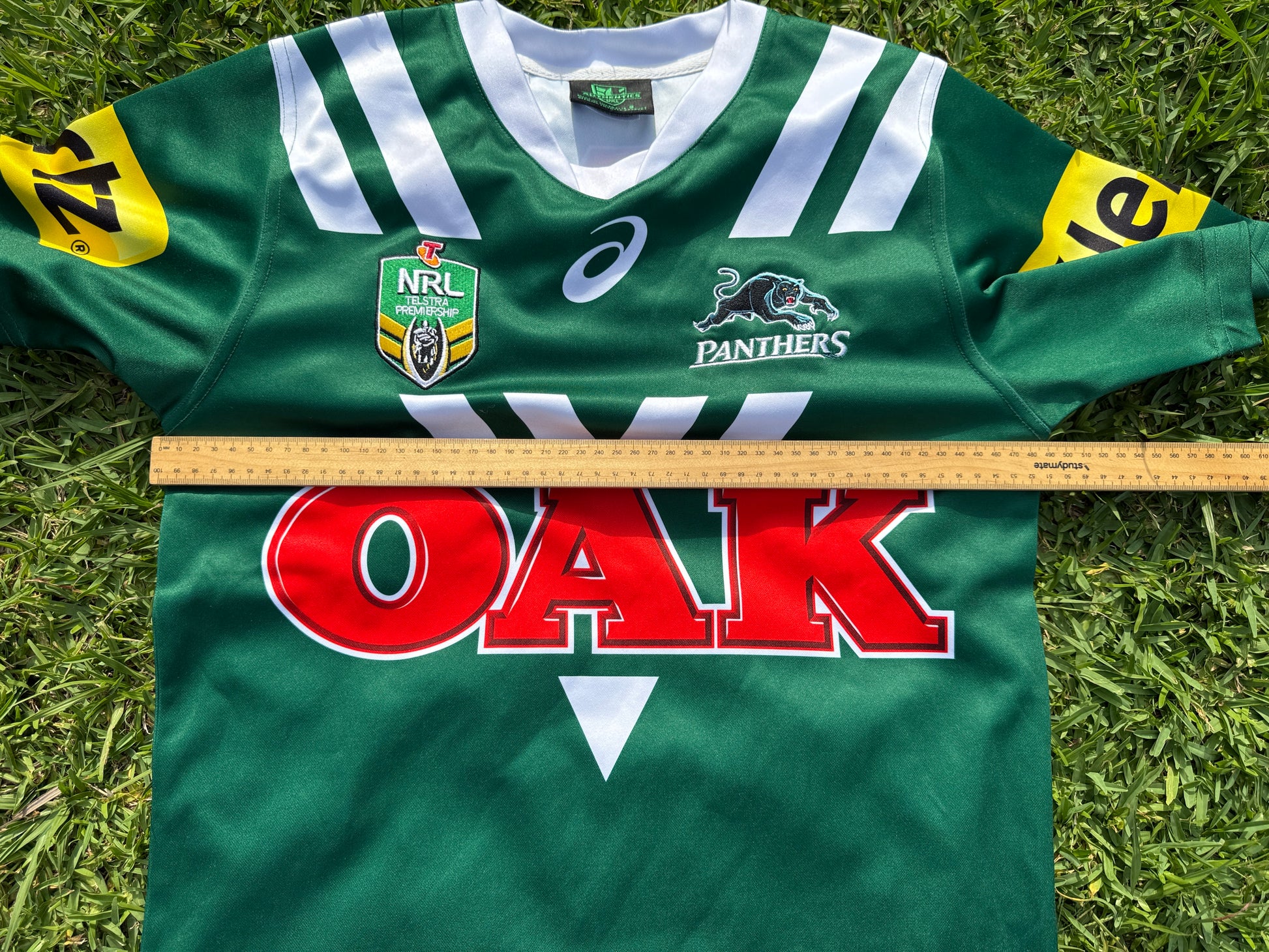 Made by Asics this jersey is marked as a Small and measures 49cm (across the chest, arm pit to arm pit) which makes it true to fit.