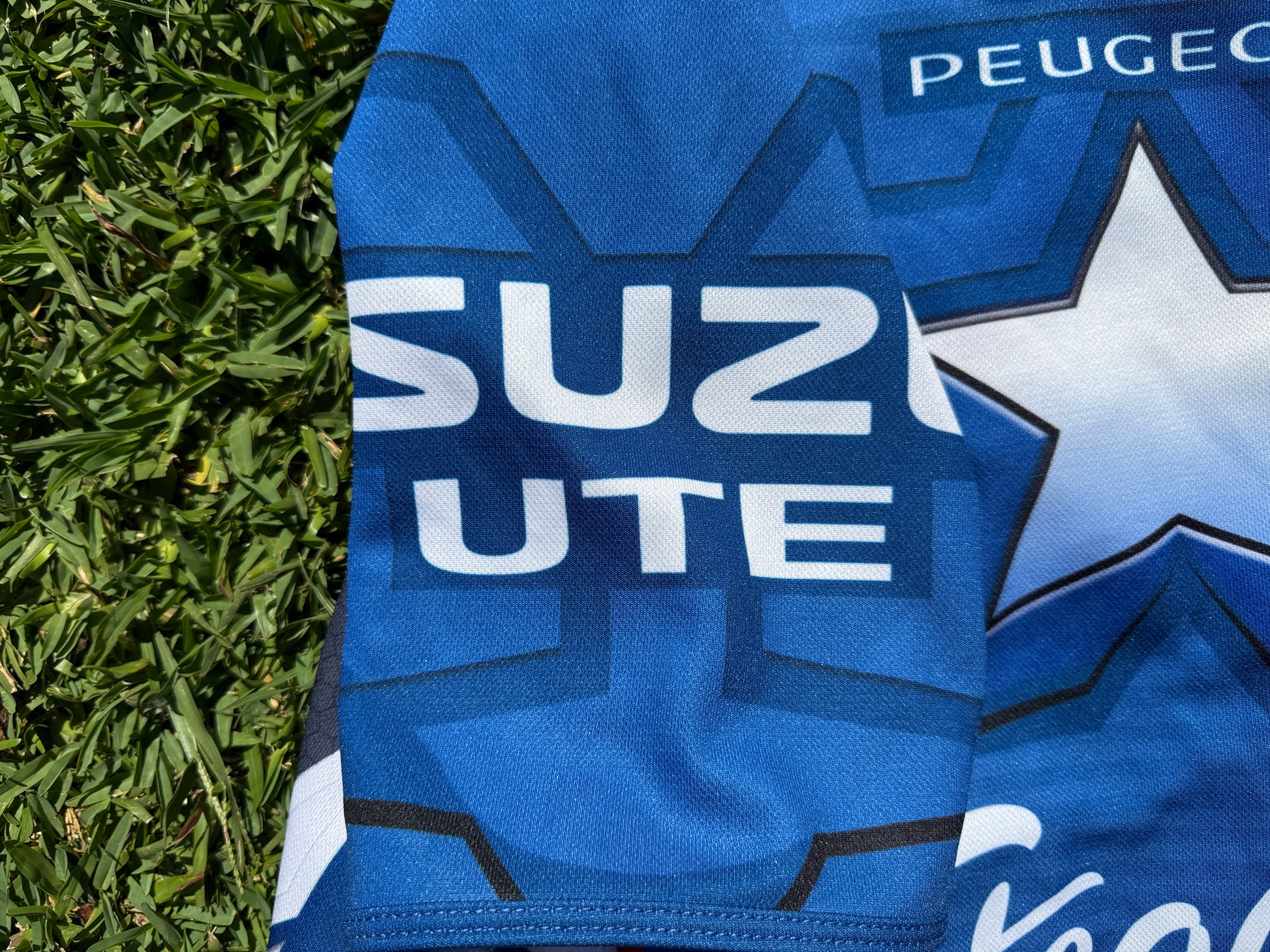 Made by ISC this jersey is marked as an M but measures 55cm across the chest (pit to pit), making it