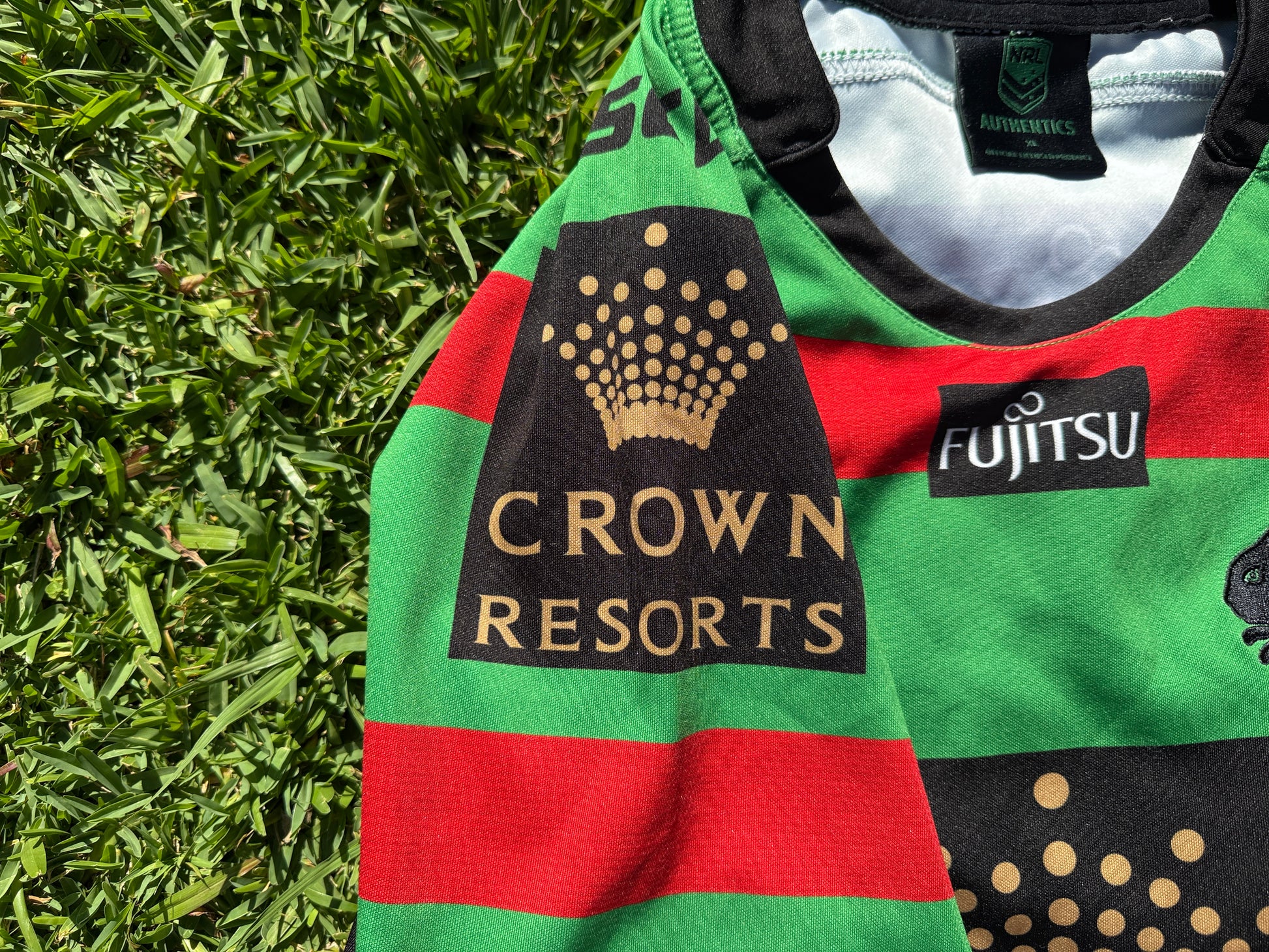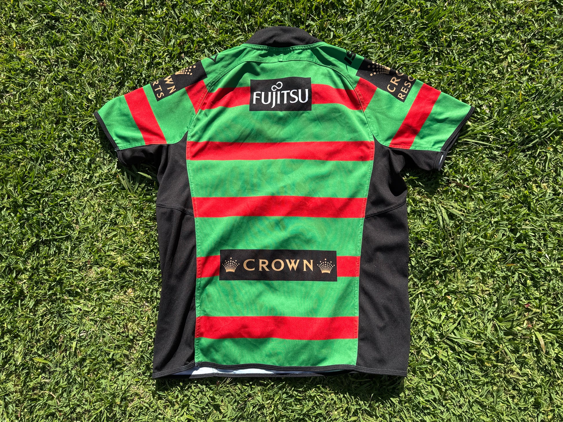 Souths Made a very small change to their 2015 home kit swapping the fujitsu sponsor on the sleeves for Crown resorts. However it did, and still does, maintain that classic souths look.