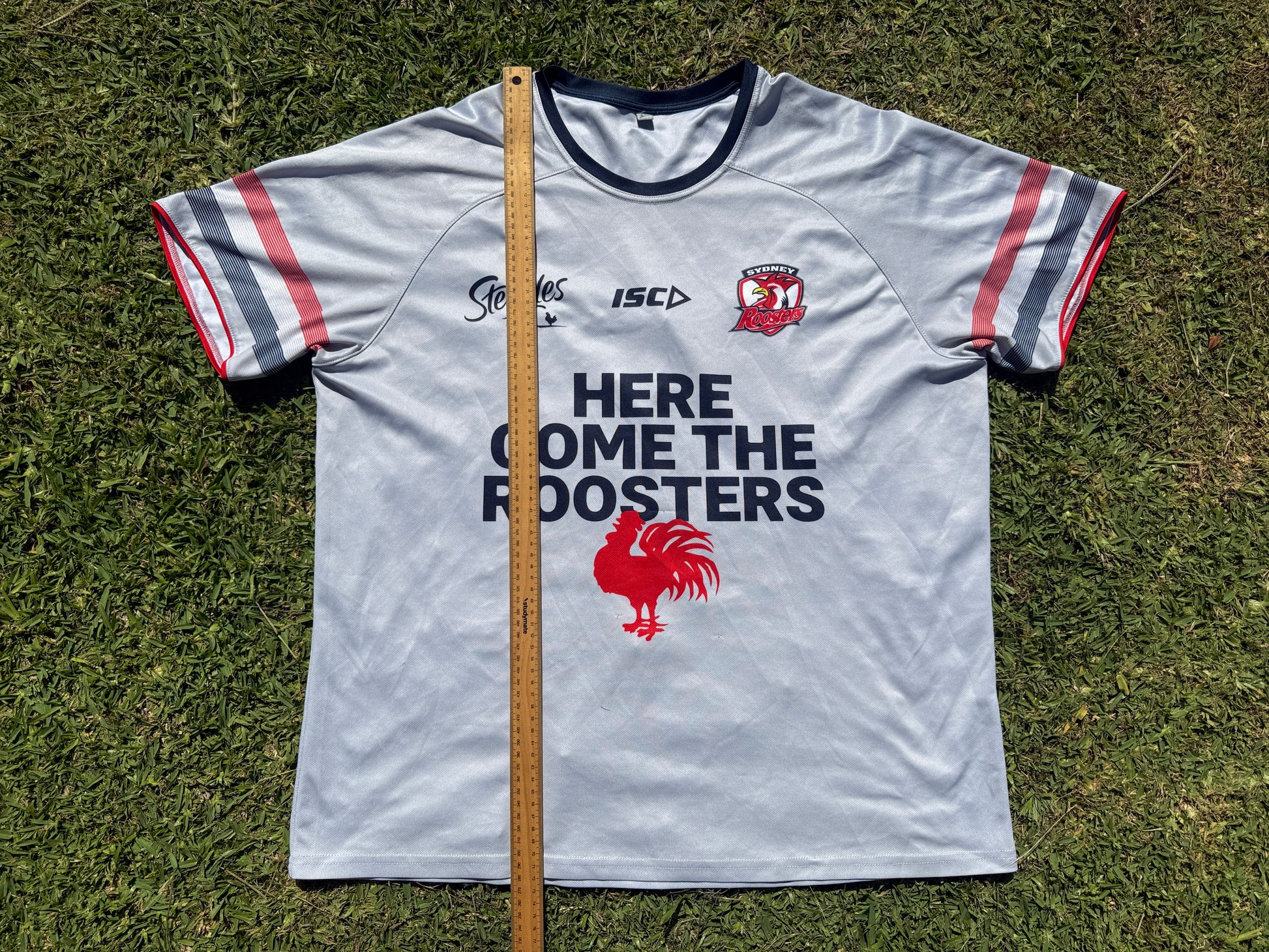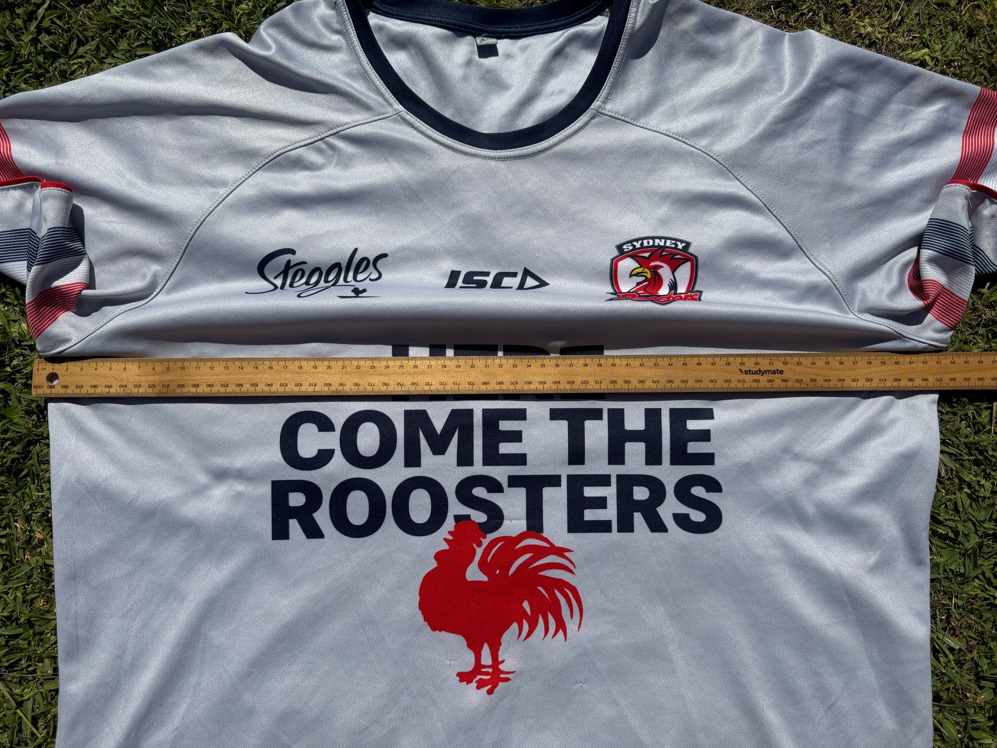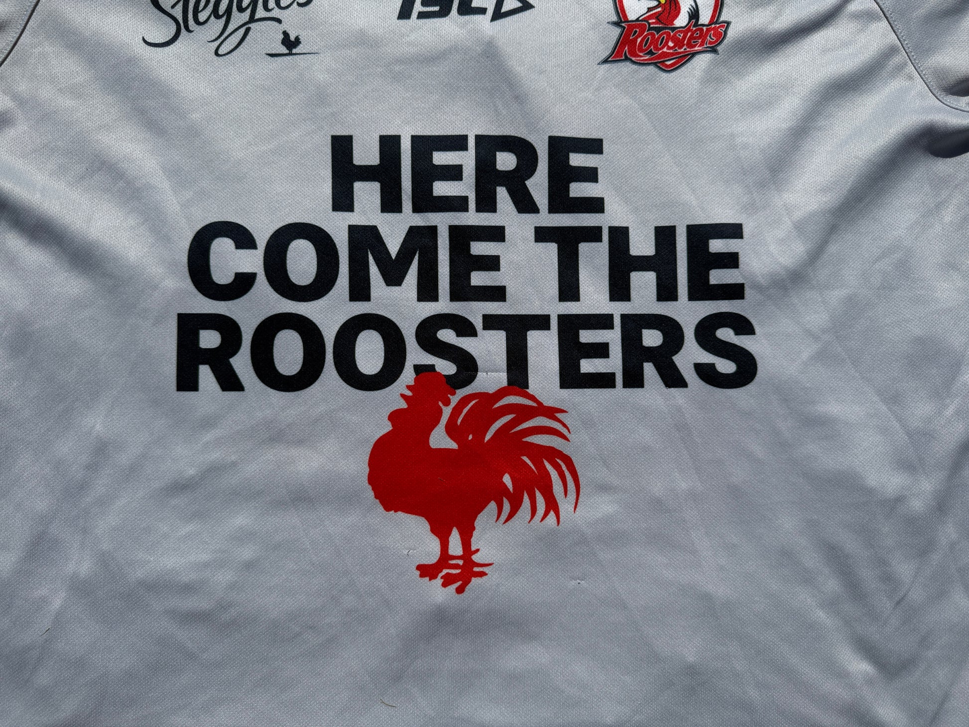 Strut your stuff in this vintage 2020 Sydney Roosters run out tee, sized 2XL for that comfortable, relaxed vibe. Rock the Chooks' classic colours and show everyone which side of the fence you're on. Perfect for game day, training, or just hanging with fellow footy fanatics. Comfort meets club pride in one legendary piece of NRL history. Here come the Roosters!