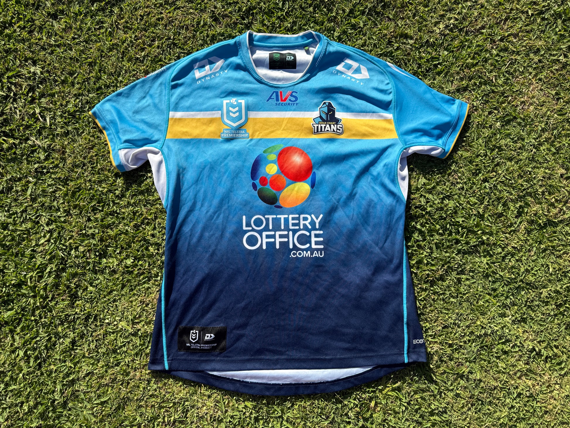 Made by Dynasty this jersey is marked as a L but measures 58cm across the chest (pit to pit), making it more like a modern XL.