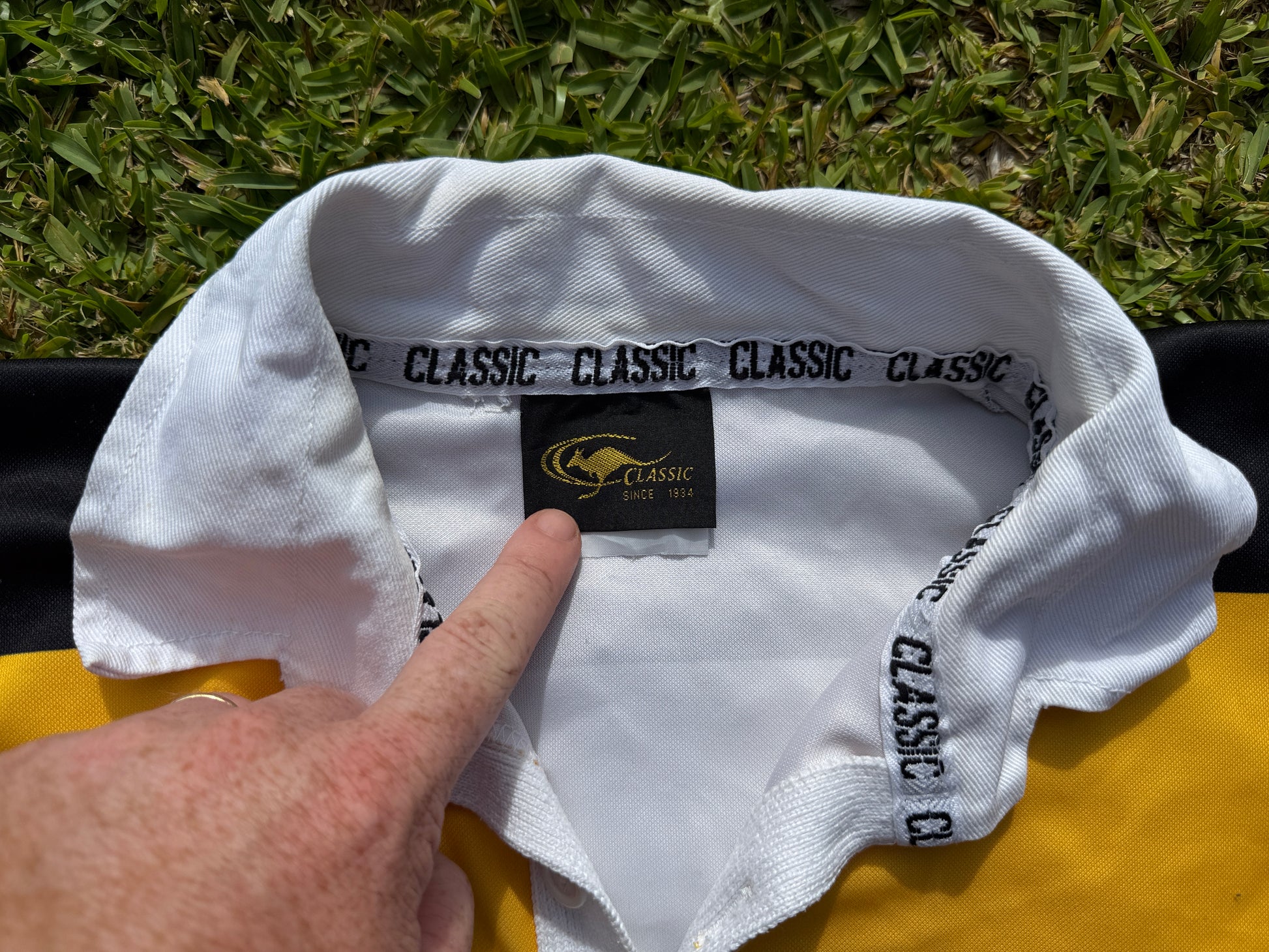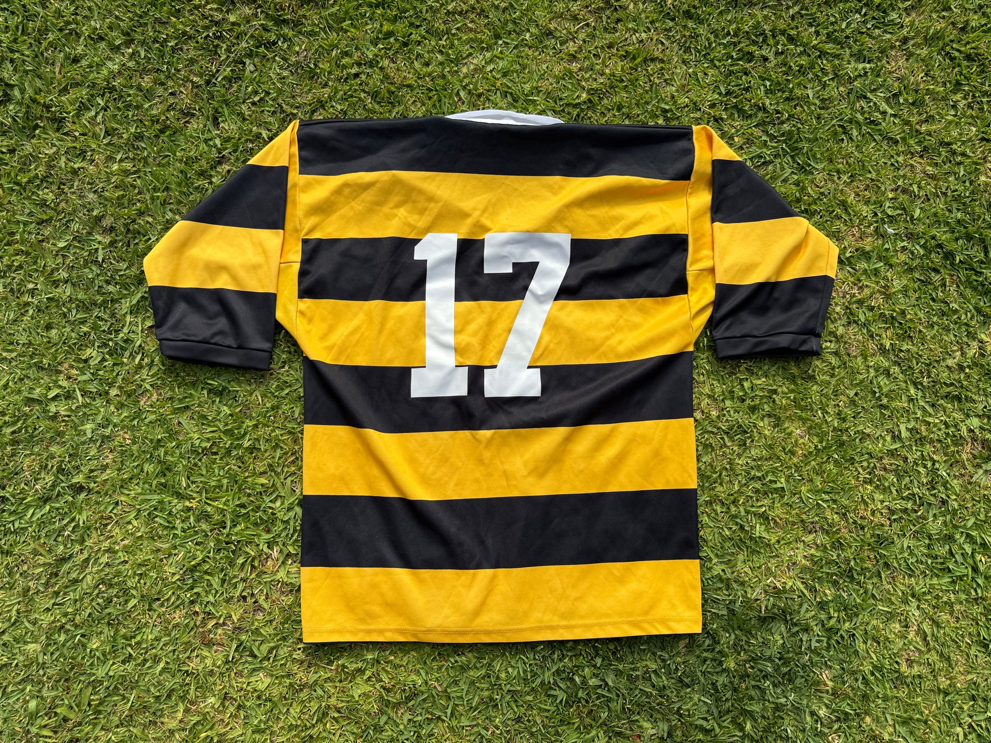 Made by Classic Sportswear this jersey is unmarked but measures 58cm across the chest (pit to pit), making it more like a modern XL.